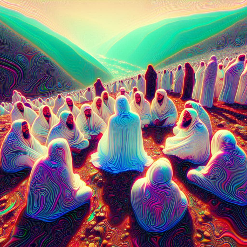 It was on mount Arafat, a day that really makes Hajj, Hajj, the 9th day of Dhul Hajj. It started by me being in the company of a group of people walking towards the mountan to take our place for the process of Hajj. The group of ten people contained about an equal amount of older people in their early 50s and younger people in the age range of say 20 to 25.