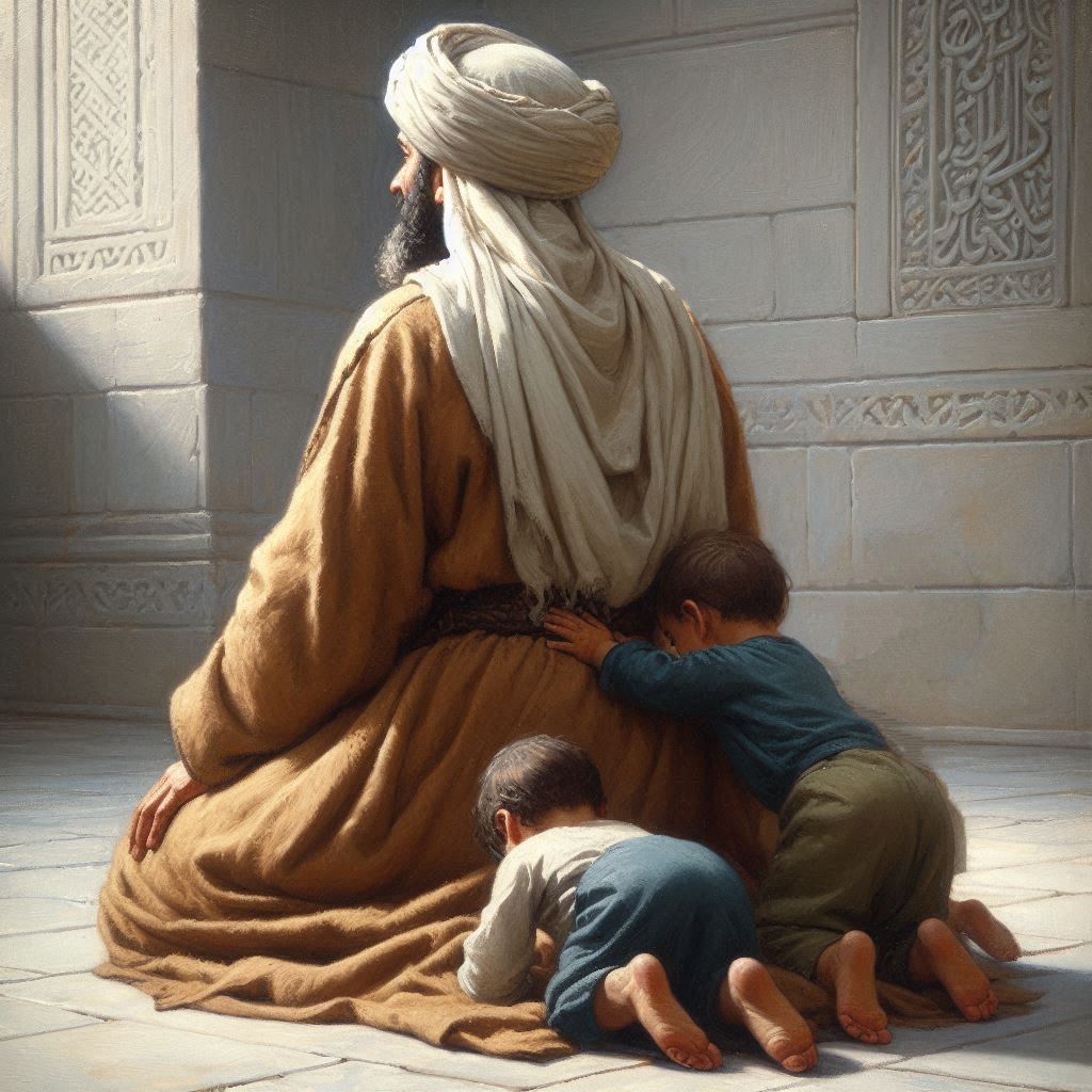 I saw someone nearby and I asked who the man was and he said, “You don’t know? That’s the Prophet (SAW).” Then I asked the man who the kids were and he told me they were his grandkids.