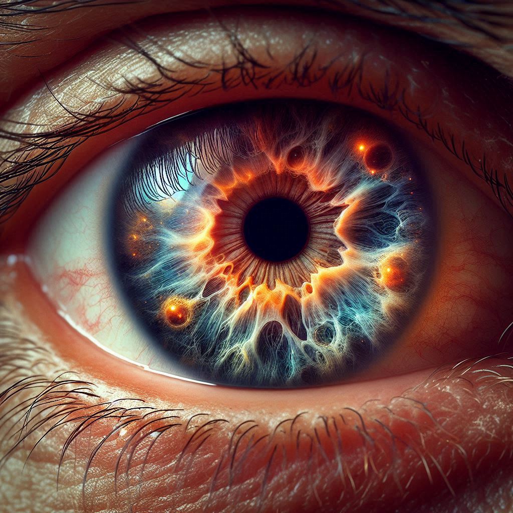 Suddenly, she was standing before the Prophet (saw). He sat on a raised platform cross-legged, wearing a white turban and clothing. He was older, around 60, and had a white beard/mustache. He had very powerful, lively brown eyes, like a whole universe was contained in them. She was blind to the rest of him due to his entrancing eyes.